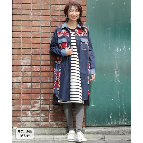 地球に優しい素材のベーシックなボーダーワンピース Sale ワンピース レディース 秋 冬 長袖 ボーダー スリット クルーネック 膝下丈 Iライン リサイクル エコロジー Eco 綿 コットン サスティナブル エスニック チチカカ Titicaca リサイクルパネルボーダー Jwjbc343